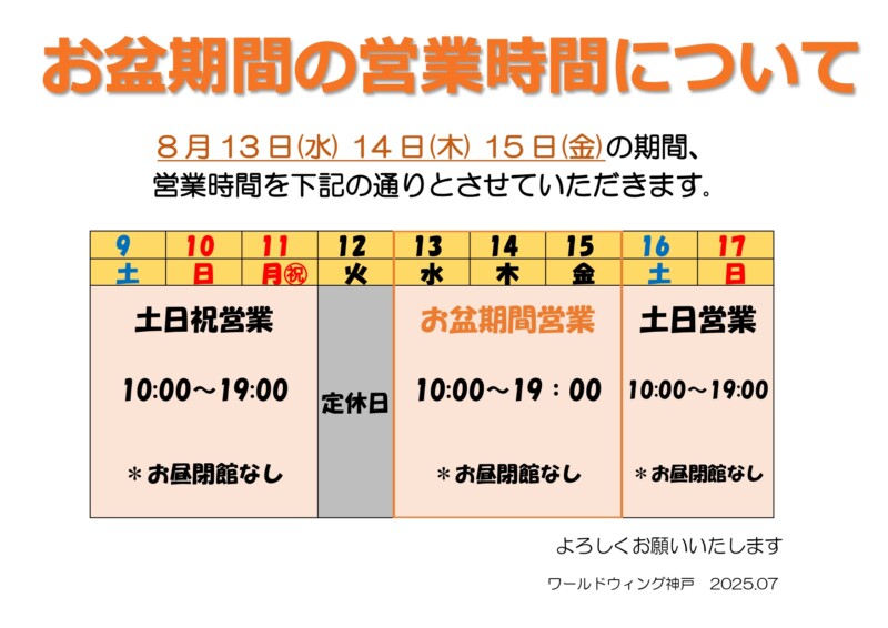 お盆期間の営業時間について